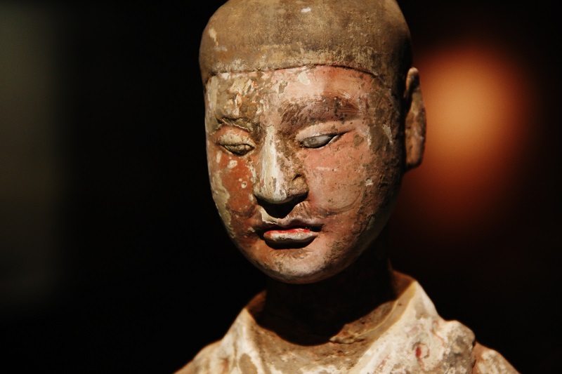 Housed in the second - floor exhibition hall, the Tri - colored Black Glazed Pottery Horse is a true treasure of the Tang Dynasty (618 - 907 AD). Standing 73 cm tall and 84 cm long, its body is predominantly black, with the horse's face, mane, tail, and four hooves in white, and the saddle in green, yellow, and white. This color combination is quite rare among Tang tri - colored glazed pottery. The horse appears to be lowering its head slightly, as if neighing. Its robust and majestic build, along with the harmonious blend of color, texture, and posture, perfectly embodies the strength and beauty of the Tang Dynasty. It was likely used as a funerary object, reflecting the prosperity and artistic achievements of the Tang Dynasty.